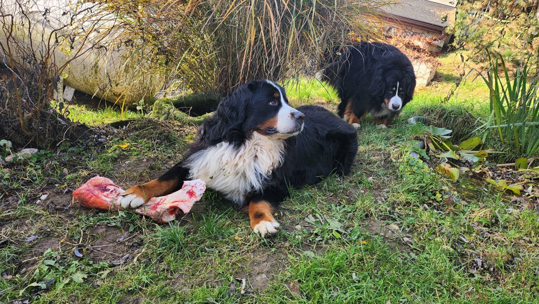 Po hodně dlouhé době dostala dnes naše smečka čerstvé kosti. Jejich nadšení nebralo konce, vydrželi hlodat celé odpoledne a večer padli jak mrtvolky. Pár momentek je tady.