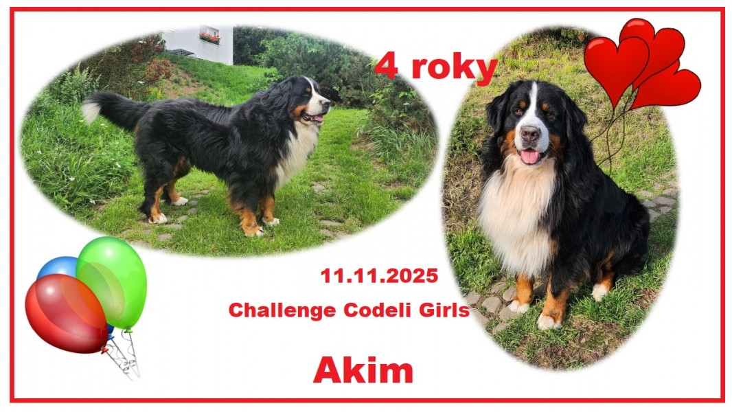 Dneska slaví náš Akoušek - Challenge Codeli Girls 4.narozeniny, u nás už druhé. Přivezli jsme si ho domů krátce po jeho 2.narozeninách, které asi neslavil, tou dobou byl v Děčínském útulku. Hodně zdraví a ještě hodně let s námi, zlatíčko naše hodný. Popřáli bychom i jeho 9ti sourozencům ale vůbec nic i nikom z nich nevíme. Fotečky z oslavy jsou tady.